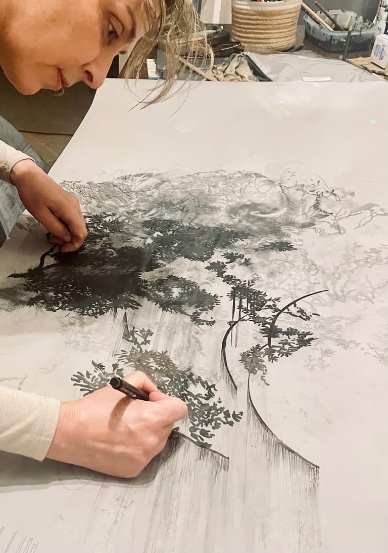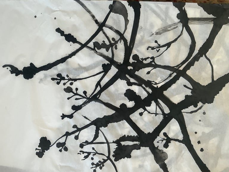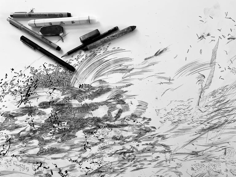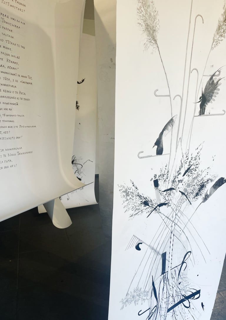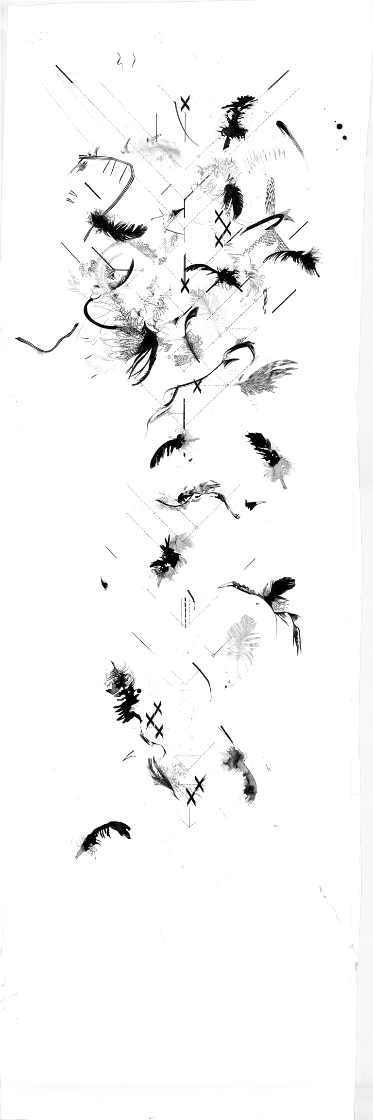 Developed through doctoral research, these long-format drawings explore paper as a relational field. Working with graphite and ink — and through processes of layering, erasing and reworking — I approach drawing as an expanded, spatial practice. Installed architecturally in extended scroll formats, the works move between surface and environment, holding density, interruption and return.